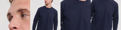 Twin needle stitching and taped back neck. Comfort finish cuff seams. Tape reinforced shoulder seams. Open sleeves. Twin needle stitched hem, cuffs and around front neck.