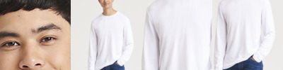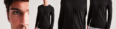 Modern fit long sleeved T. Size tab label. Triblend fabric for style and comfort. Taped neck. Twin-needle stitching on sleeves and bottom hem. Ribbed crew neck style. soft-feel fabric. Side seams. Set-in sleeves.