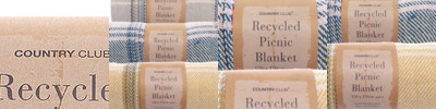 120 x 150cm picnic blanket. Made from recycled materials, therefore creating natural variation in colour and design.