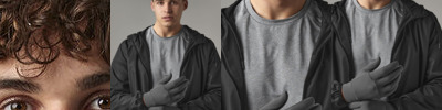 Tear-out adhesive fabric label. Breathable softshell fabric. Windproof, lightweight and quick drying. Ergonomic fit. Compatible with touchscreen devices. Available in two sizes.