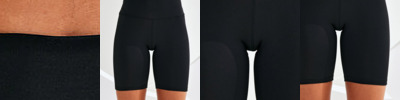 Legging shorts. Soft-stretch fabric. Deep waistband. Shorts finish mid-thigh. We recommend using block out vinyl and inks.Product contains no branded neck or waist label. Removable Kimble or looped garment tags. Inner seam label holds important product information on one label with a second label containing brand information which can be cut-away.