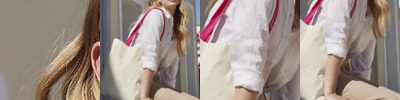 Contrasting colour handles. Can be carried by hand or over the shoulder.
