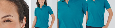 Stand up collar for increased shape retention. Washable at 60°C. Cuffed sleeves. 3 button placket with self-coloured buttons. Short sleeved. Also available in women's