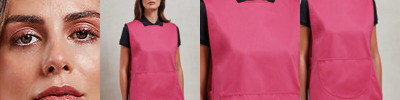 Side tabs with adjustable, stud-fastened closures. Colour-matched bias trim edges, large patch pocket. Crease resistant finish. Industrial laundry 85°C, domestic wash 60°C