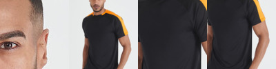 Unisex team t-shirt with self-fabric contrast colour sleeve panels. Sports fit. Wicking finish provides moisture management. Quick-dry and breathable. Self-fabric 2-piece collar. Raglan shoulder. Tear-out label for easy rebranding.