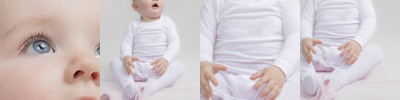 Long-sleeved sleepsuit made in organic cotton. YKK popper fastening on the shoulder and around the leg opening. Set-in feet. Binding around the neck and self-fabric cuff on the sleeve.