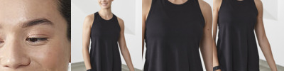 Soft-touch single Jersey fabric. Self-fabric binding at neck and armholes. Wide racer back with forward facing shoulder seams. Long back with split up the middle, which can be worn open or tied up. Curved back section where split begins. Tombo tear-out label.