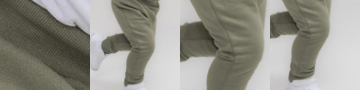 Kids' joggers made in recycled fabric with self-fabric knitted rib at folded waistband and cuffs. Gusset panel. Tag-free.