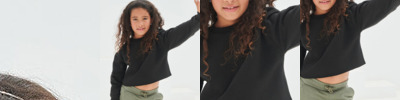 Tear-out label. Oversized sweatshirt with cropped raw hem. Set-in sleeves, with dropped shoulders. 2x2 ribbed neck and cuffs. Single Jersey back neck tape.