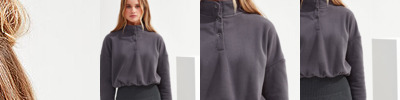 Cropped pull-over fleece with high neck. 1/4 neck popper fastenings to front. Elasticated waistband. We recommend using block out vinyl and inks.Product contains no branded neck or waist label. Removable Kimble or looped garment tags. Inner seam label holds important product information on one label with a second label containing brand information which can be cut-away.