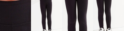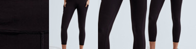 7/8 length leggings (1/8 shorter than full-length). Soft stretch. Recycled fabric. Elasticated self-fabric waistband. Two pockets to each leg. The product contains no branded neck or waist label. Removable kimble or looped garment tags. The inner seam label holds important product information on one label with a second label containing brand information which can be cut-away. We recommend using block out vinyl and inks.