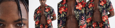 Relaxed fit shirt. Cuban collar. Button front closure. Short sleeves.