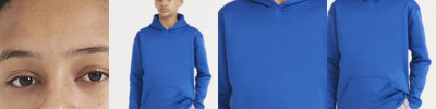 Sporty fit. Twin-needle stitching detail. Three panel double fabric hood. Kangaroo pouch pocket. Straight hem. Self-fabric cuffs and hem. Simple tear out label makes it perfect for rebranding.