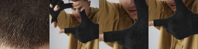 Fingerless style. One piece knit. Ribbed cuff. Available in two sizes.