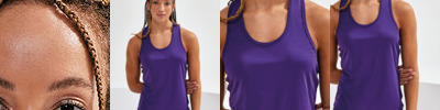 Scoop neck. Elastic racer back with 'laser cut' holes. BSCI certified. SEDEX certified. WRAP certified. We recommend using block out vinyl and inks.Product contains no branded neck or waist label.* Removable Kimble or looped garment tags. Inner seam label holds important product information on one label with a second label containing brand information which can be cut-away.