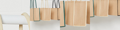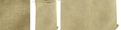 Natural jute. Cotton drawcord closure. Tear out label. Capacity 40 litres.