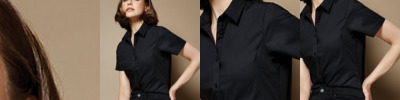 Fused soft stand-up collar (no stiffeners). 7-button placket with self-coloured buttons. Rounded hem. back yoke. Single stitching around armholes. Double-stitched sleeves and side seams. Under bust darts. Back darts from hem to under arm point. Spare button. Kustom Kit® woven back neck label.