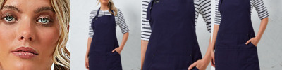 Full bib apron with kangaroo style pockets. Rivet detail and gun metal eyelet. Knotted neckband for height adjustment. Heavy canvas cotton. Self-fabric ties.