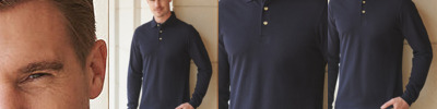 Tag-free heavyweight Jersey polo shirt. Stretch ribbed collar and cuffs. Single Jersey collar stand and under placket. 3-button placket, with navy buttons. Twin-needle stitching at hem. Herringbone tapes side vents.