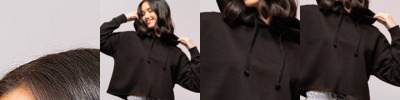 Tear-out label. Oversized hoody with cropped raw hem and functioning drawcord around hood. Set-in sleeves, with dropped shoulders. Single Jersey back neck tape.