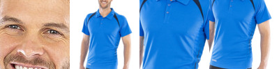 Set-in-sleeve design with 3 button placket. Self coloured buttons. Half moon yoke. Self fabric side panels. Drop tail with side vents for extra comfort. Enhanced SuperCool fabric with superior wicking properties and anti-bacterial finish. Self fabric sapphire blue taped back neck. Twin needle stitching detail. Flat knit rib collar and self fabric cuffs. Simple tear off label makes it perfect for rebranding. Worldwide Responsible Accredited Production (WRAP) certified production.