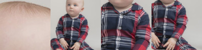 Babies’ all-in-one tartan pyjamas with self-fabric chest pocket. Button-down centre front and internal YKK poppers around the inseam and self-fabric gusset. Self-fabric cuffs on sleeves and legs, and self-fabric pyjama collar.