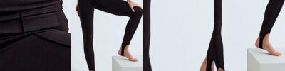 Full-length leggings. Soft-stretch fabric. Self-fabric waistband. Seam detail through centre. Elasticated stirrup design to feet. The product contains no branded neck or waist label. Removable kimble or looped garment tags. The inner seam label holds important product information on one label with a second label containing brand information which can be cut-away. We recommend using block out vinyl and inks.