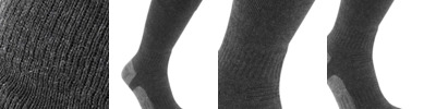 Merino blend socks. Cushioned sole, toe and heel. Elasticated ankle support. Double cuff.