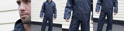 Jacket: Concealed hood in collar. Full front zip fastening. 2 spacious front pockets. Inner back mesh vent. Inner elasticated storm cuff. Stud closing front storm flap. Full-taped seams. Adjustable drawcord hem. Trousers: Fully taped seams. Elasticated waistband. 2 side pocket slits to access garment being worn underneath. Adjustable snap closing ankles. Waterproof 2000mm Windproof. Decorating methods: Digital transfer print, direct print.