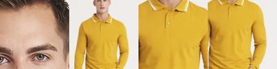 Modern and stylish fit. Contrasting tipping on collar. Three- button placket with dyed-to-match buttons and spare button. Size label only, for easy rebranding– colour coded black for unisex. Cuffed sleeves. 1x1 ribbed flat collar. Excellent surface for print or embroidery. Taped neck. Long sleeves. Twin-needle stitching detail on armhole and bottom hem.