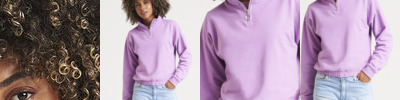 Women's regular fit. Funnel Neck. Quarter zip fastening. Cropped style. Elasticated hem. Brushed Inner fleece. Ribbed cuffs. Soft cotton faced fabric creates ideal printing surface. Simple tear out label makes it perfect for rebranding.