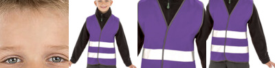 Generous in size allowing to be worn as an over garment. Black Polyester bound edges. 50mm sewn on safety tapes. Note: these garments should be worn fastened and kept clean to maintain effectiveness. Conforms to EN1150 – 89/686/EEC directive Size - Age S - 4/6 , M - 7/9 , L - 10/12 Chest to fit 22.5/24”, 25/27.5”, 29/31”