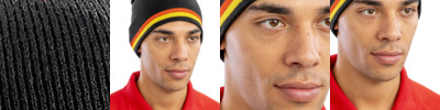 Windproof. 6 gauge dense knit. Stripe knit. Solid colour inner. Cold weather protection. Extremely warm. Stand out national colourways. Team colour trend.Decoration Guidelines:Decorating methods: Embroidery. Decorators access point: Open.