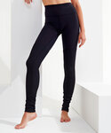 Yoga leggings. Deep waistband. Upper part Jersey, lower part rib knit. Elasticated lower leg gives ruched look when worn. Lined panel between legs for smooth fit. We recommend using block out vinyl and inks.Product contains no branded neck or waist label. Removable Kimble or looped garment tags. Inner seam label holds important product information on one label with a second label containing brand information which can be cut-away.