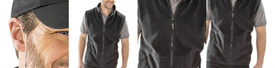 Fleece Gilet. Zip through front. Side pockets with cover stitch.