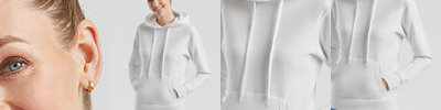 Double fabric hood with self-coloured draw cord. Front pouch pocket. Waist and cuff rib in cotton/Lycra® for shape retention. Shaped side seams for a more feminine fit. Produced using Belcoro® yarn for a softer and cleaner printing process.