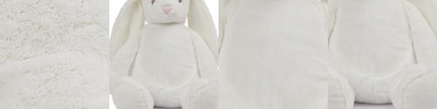 Cream coloured soft plush rabbit. Floppy ears. Contrast pink nose. Sewn eyes. Cream coloured panel on chest and feet. Zip details on the base of the Rabbit for direct access onto the tummy for embroidery. Removable inner stuffing. Complies with EN71 European Toy Safety regulations. Remove all hang tags and their fasteners before giving these items to a child. Suitable for children of all ages.